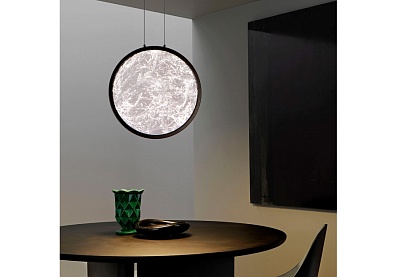 При создании коллекции светильников Imma вдохновлялись пейзажной живописью, тушью. Светильники задуманы как световые скульптуры с чувственными, завораживающими рисунками, которые, пропуская свет, создают неповторимые цветовые переходы. Металлический каркас в черном цвете, плафон из акрила с эффектом дыма, LED-лента расположена по внутреннему периметру плафона, регулируемая высота.