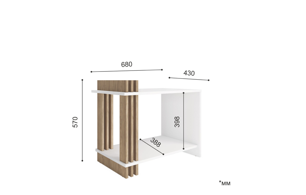 – описание: цвет швейцарский вяз, белый, размер 55.8x68.1x43 см, стиль минимализм, скандинавский, современный, назначение для дома.