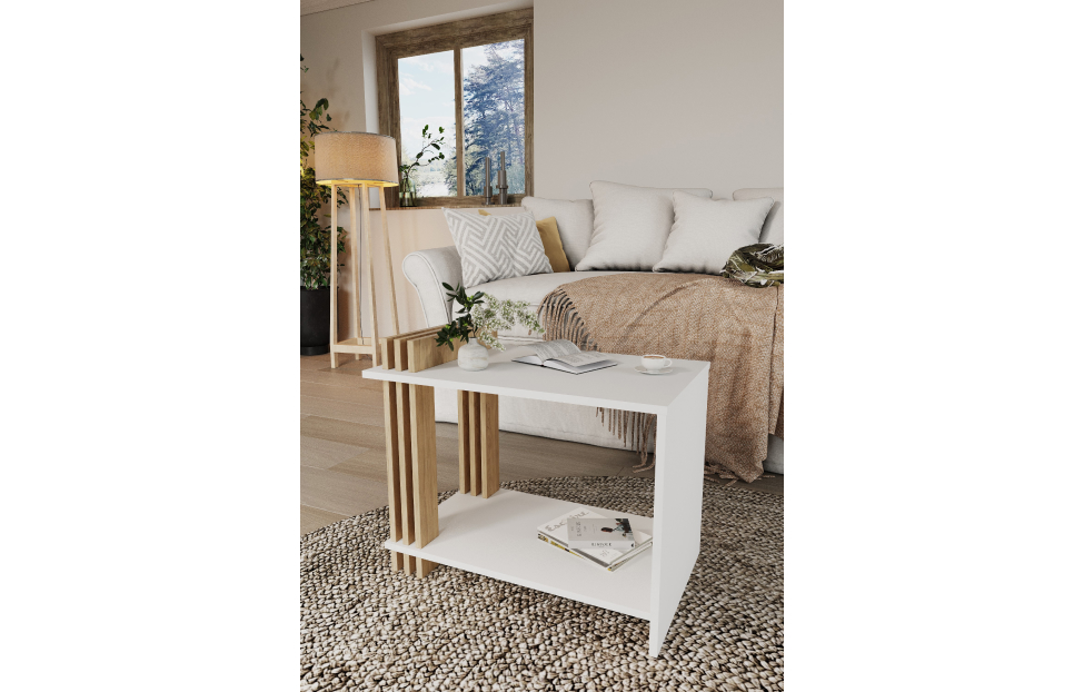 Цена на Стол журнальный Троя / Белый+Швейцарский вяз от производителя , приобретите в кредит!