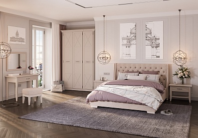 - Спальня в классическом стиле. Кантри — одна из любимых коллекций наших клиентов. Такая мебель подойдет к интерьерам в стилях прованс, кантри или сканди. При создании этой коллекции наш дизайнер вдохновлялась самобытной архитектурой Германии с ее характерной фахверковой системой;