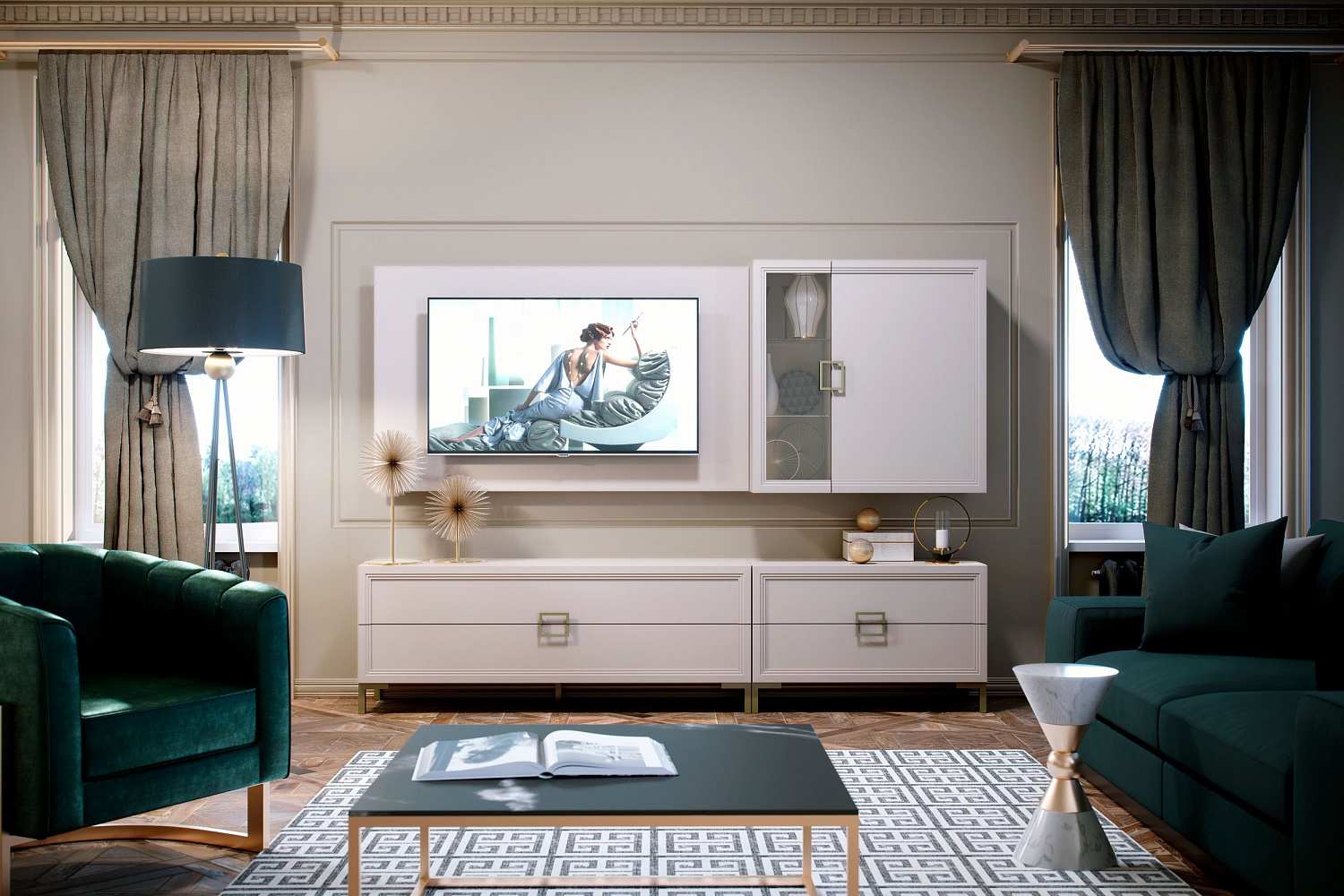 – описание: цвет кашемир серый, трюфель коричневый, стиль минимализм, неоклассика, ар-деко, назначение для гостиной.