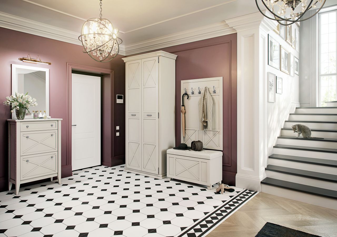 - Мебель Кантри украсит легкий классический интерьер прихожей;