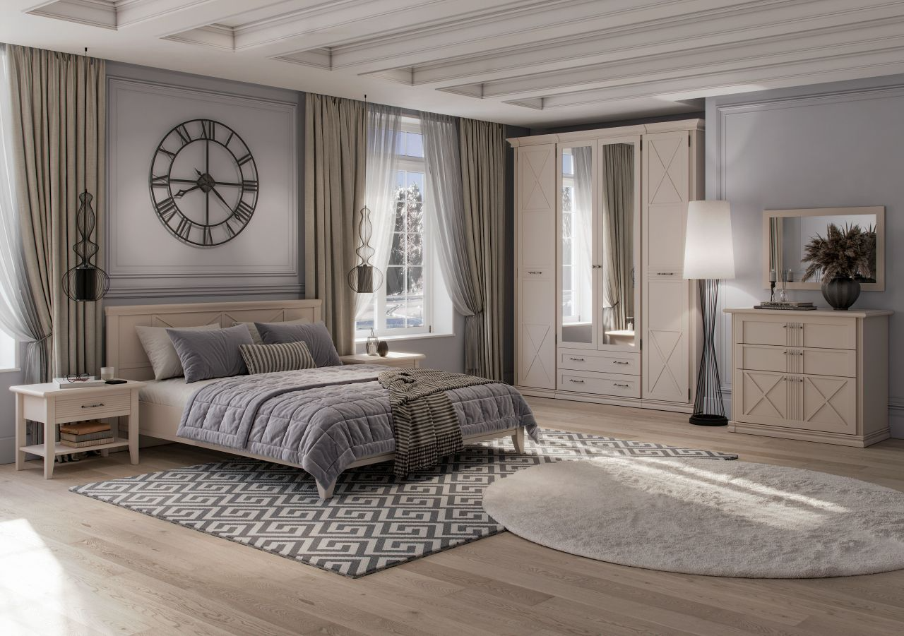 - Спальня в классическом стиле. Кантри — одна из любимых коллекций наших клиентов. Такая мебель подойдет к интерьерам в стилях прованс, кантри или сканди. При создании этой коллекции наш дизайнер вдохновлялась самобытной архитектурой Германии с ее характерной фахверковой системой;