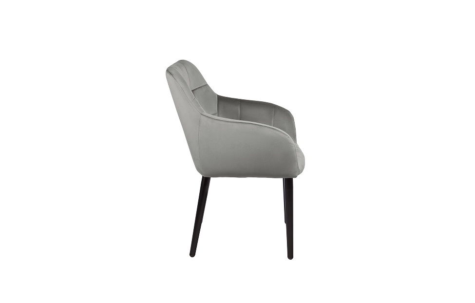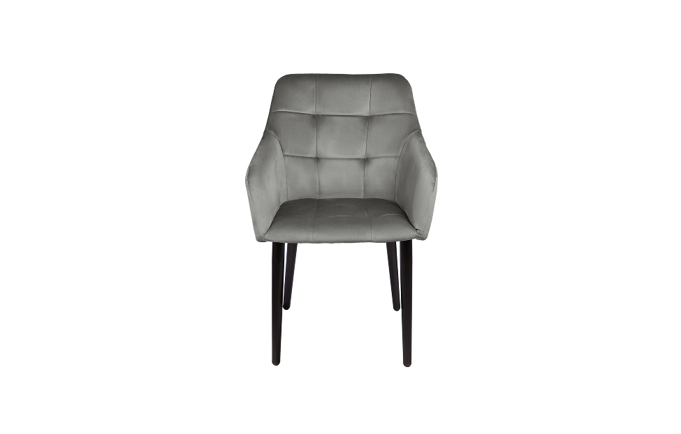 Стул-кресло Отэм прекрасно впишется в любой интерьер и комнату. Такой стул можно использовать как в качестве обеденного стула, так и в виде рабочего кресла к письменному столу. Обивка из велюра в актуальном сером оттенке прекрасно гармонирует с металлическими ножками черного цвета. Такие стулья украсят современные интерьеры, а также пространства в стиле эклектики.