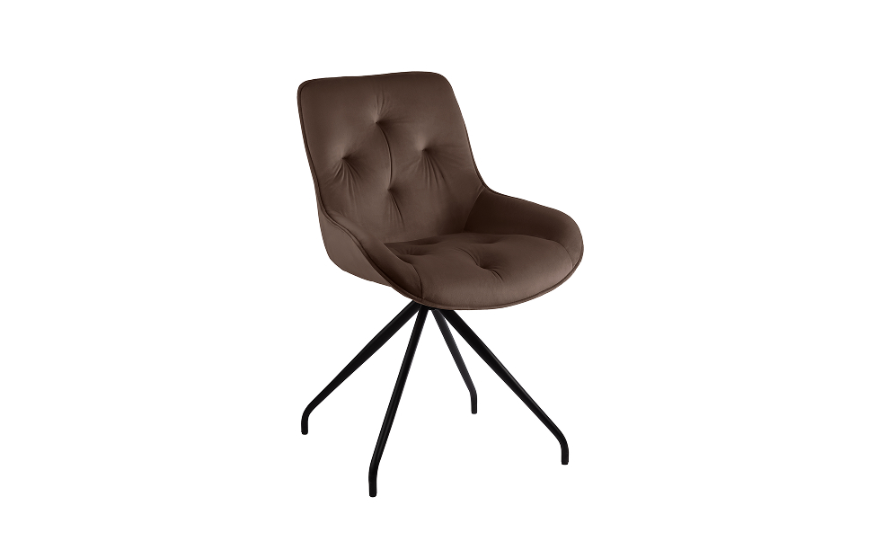 Стул-кресло Сити с поворотным механизмом прекрасно впишется в любой интерьер и комнату. Такой стул можно использовать как в качестве обеденного стула, так и в виде рабочего кресла к письменному столу. Обивка из велюра в актуальном коричневом оттенке прекрасно гармонирует с металлическими ножками черного цвета. Такие стулья украсят современные интерьеры, а также пространства в стиле эклектики.