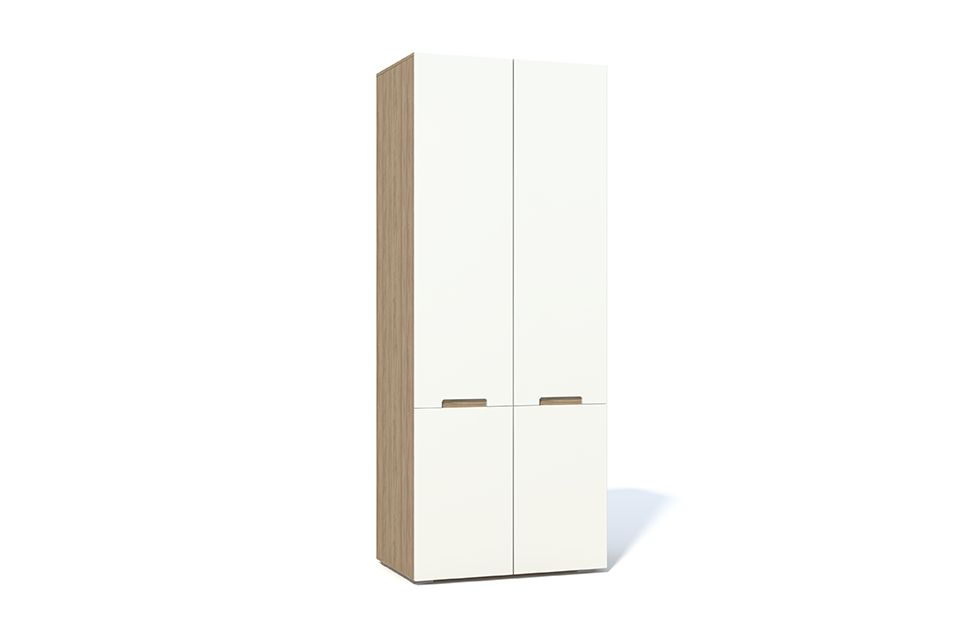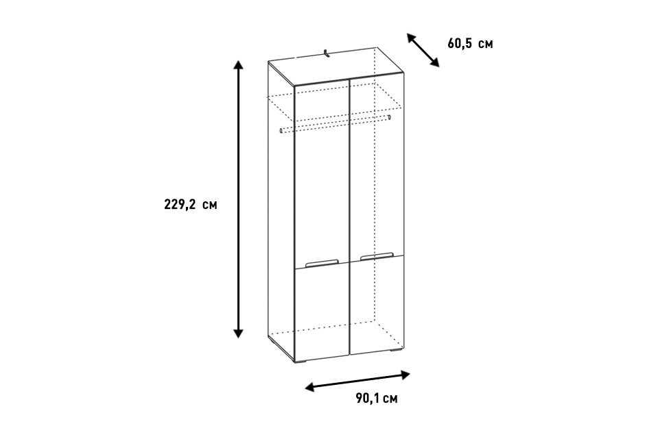 - Двустворчатый шкаф укомплектован полкой и штангой для одежды;