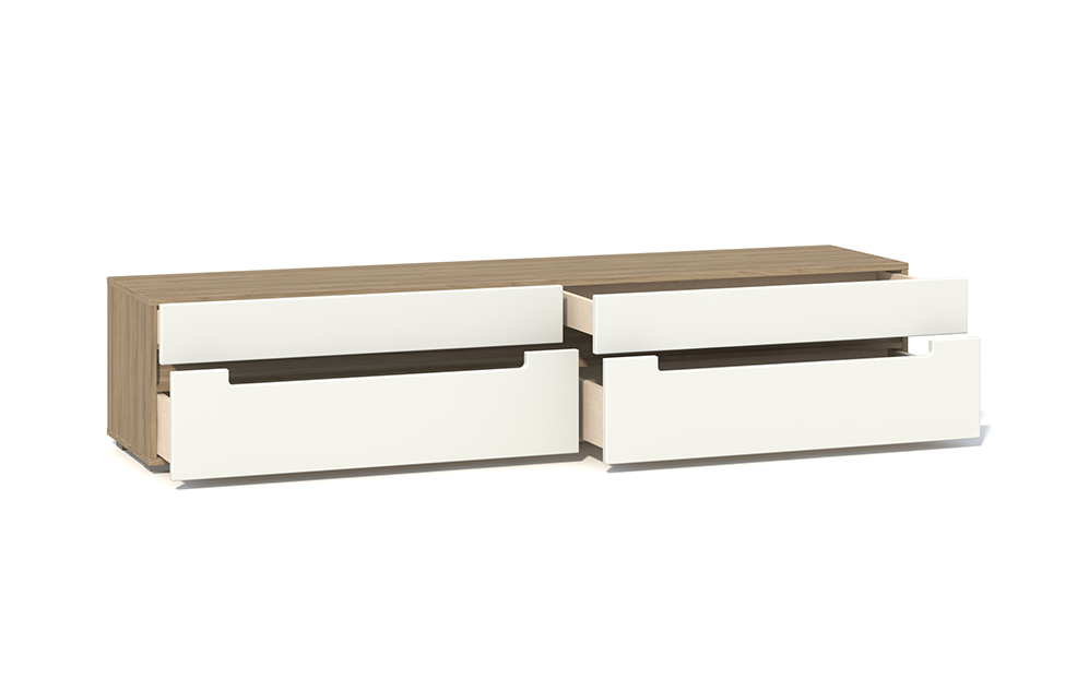 - Тумба с четырьмя выдвижными ящиками — два ящика друг над другом в каждом отделении тумбы;