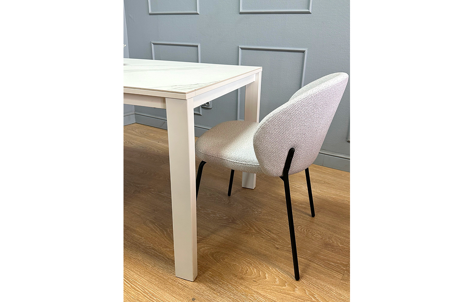 В сложенном же виде, с широкой стороны стола остаётся место даже для двух крупных кресел, благодаря расположению ножек. Раздвижной механизм обеспечивает комфорт при эксплуатации. Вмещает до четырех стульев с обеих сторон.