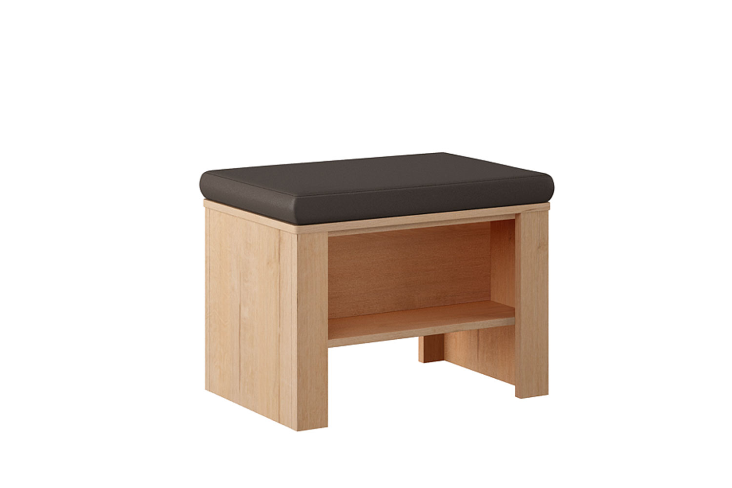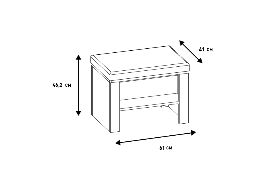 Изделие изготовлено из прочной древесной плиты. Мягкий каркас выполнен из спанбонда и синтепона, наполнен эргономичным пенополиуретаном. В маленькой нише легко поместятся аксессуары, журналы или обувь.