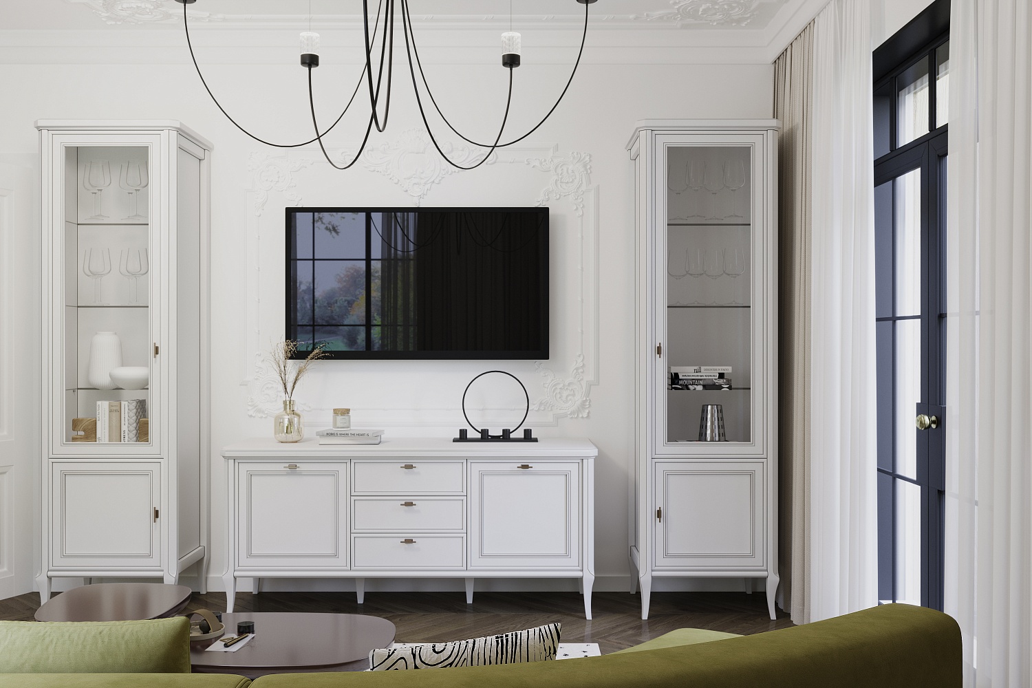 – описание: размер 214.8x287x50.5 см, стиль неоклассика, назначение для гостиной, цвет бело-серый.