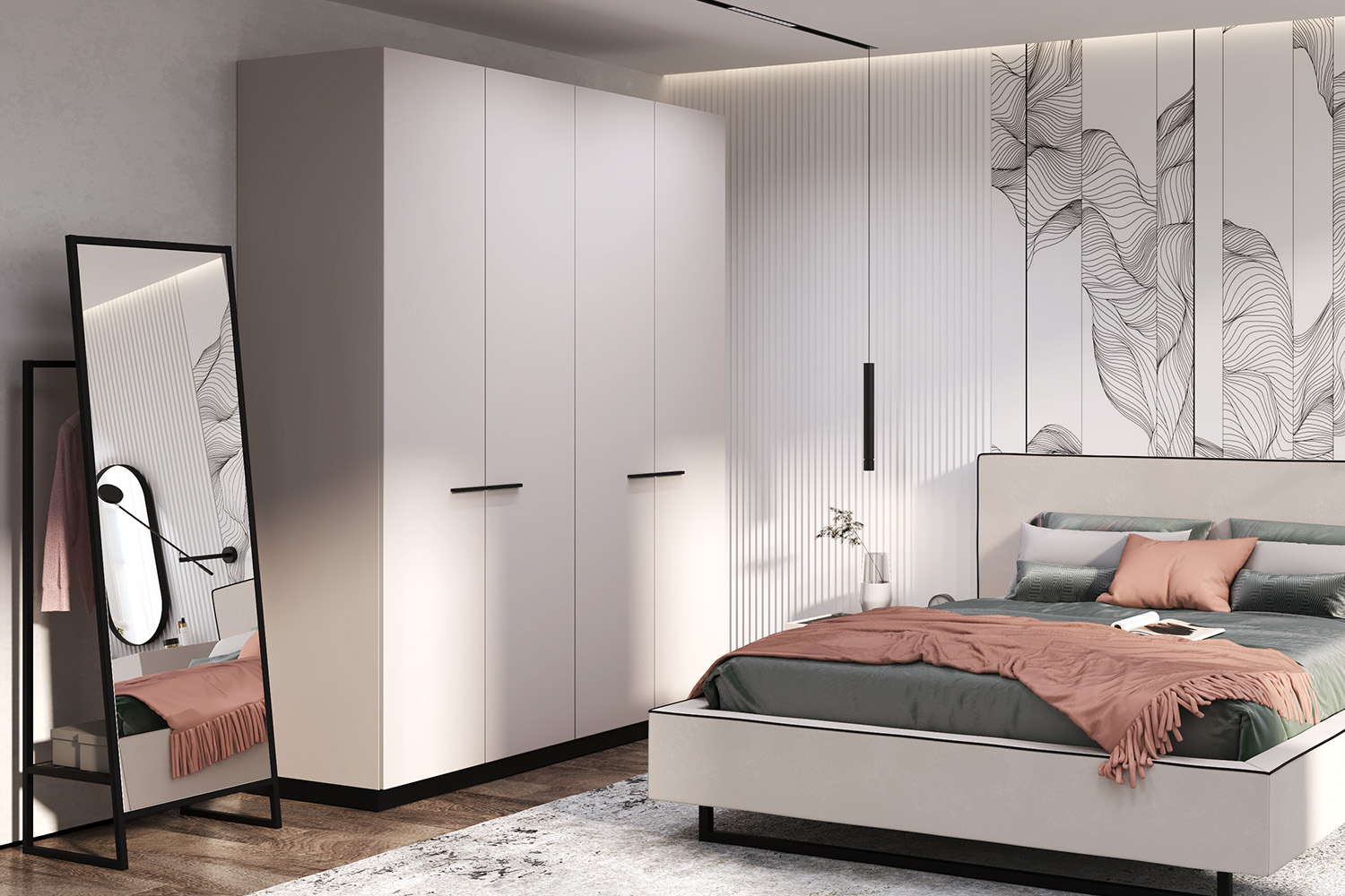 – описание: стиль современный, минимализм, назначение для одежды, цвет кашемир серый, черный графит, размер 229.1x90x61.1 см.