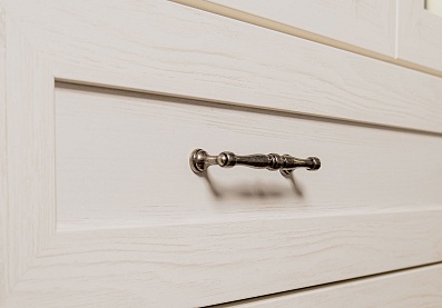 Изделие представляет собой современное прочтение классического дизайна. Шкаф имеет традиционную рамочную конструкцию, глухие фасады декорированы стильными элементами фахверками. Композицию органично дополняют вставки со сложной фрезеровкой и элегантная фурнитура в виде ручек-скоб в оттенке «античная бронза». Металлические опоры позволяют регулировать высоту мебели соответственно неровностям напольного покрытия. Цоколь из МДФ-профиля изящно скрывает прочные ножки.