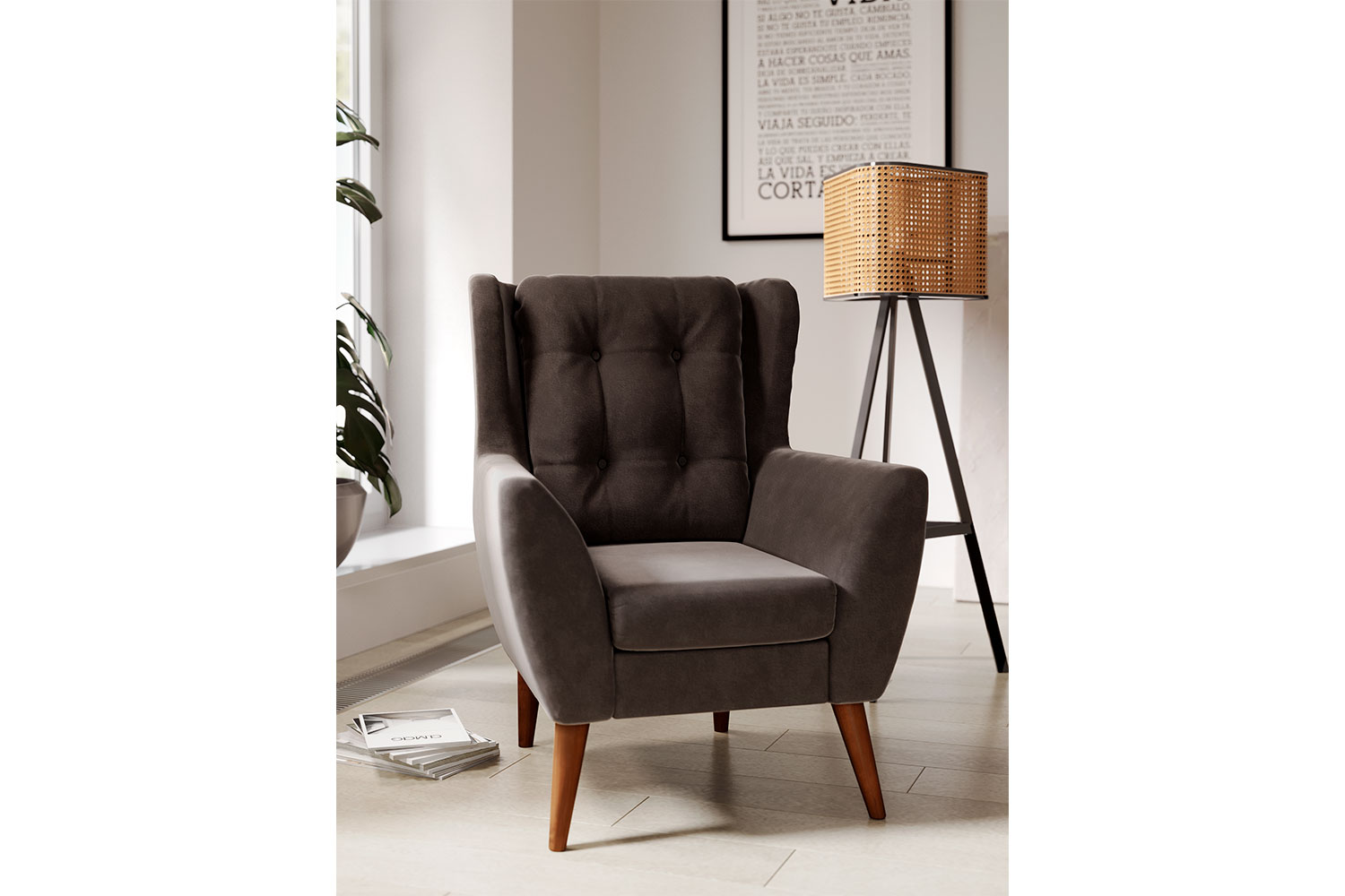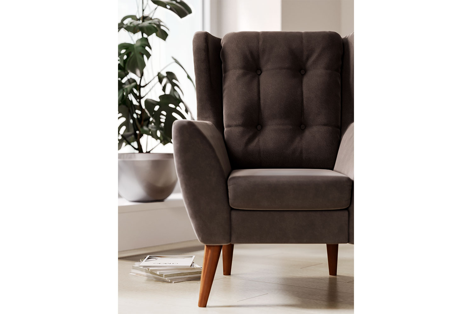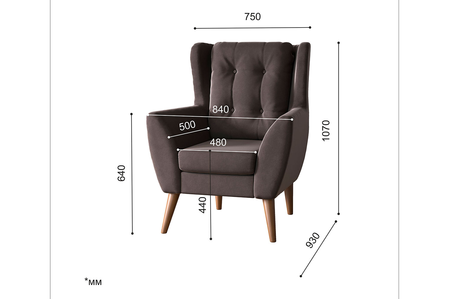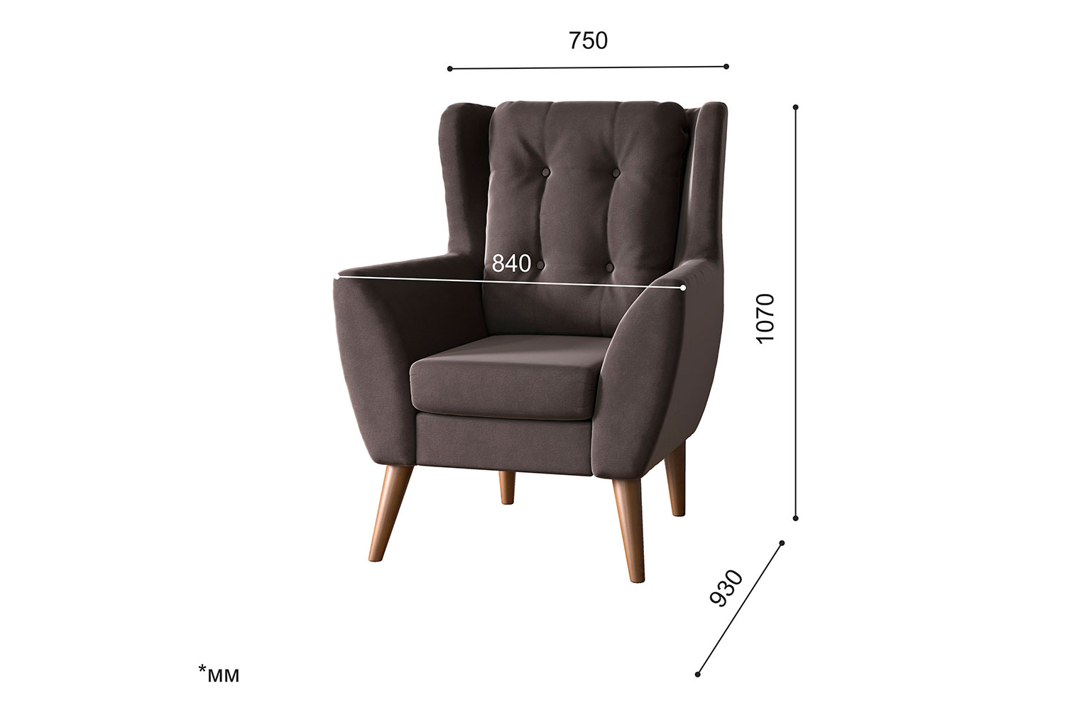– описание: цвет коричневый (velutto 19), материал обивки велюр, размер 107x84x93 см, стиль скандинавский, лофт, современный.