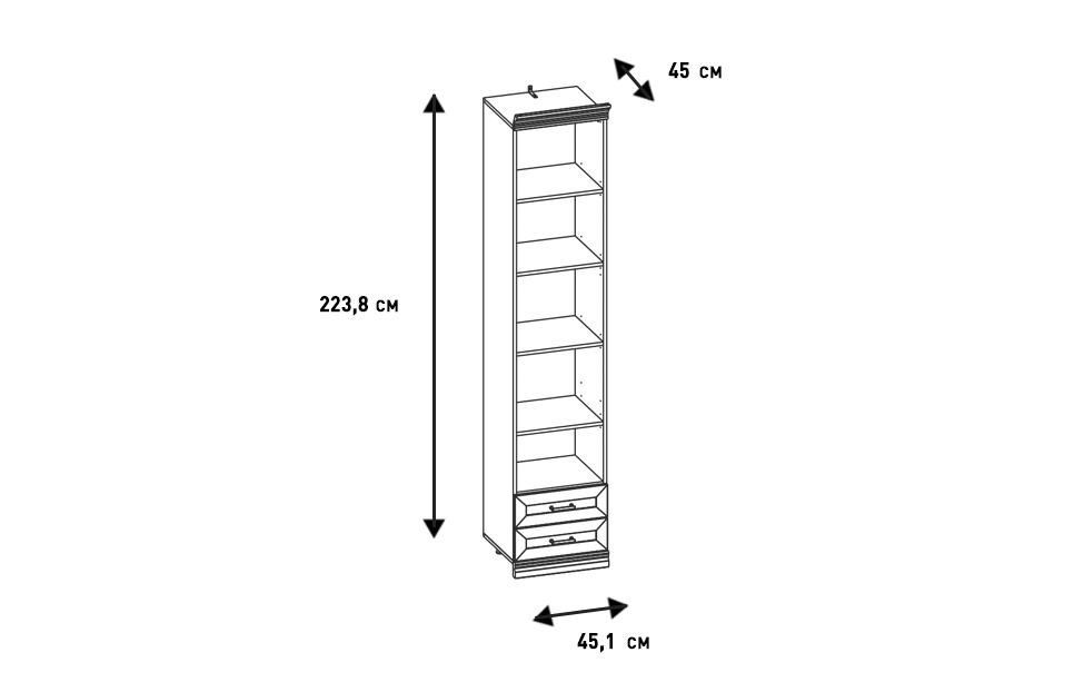 – описание: назначение для книг, стиль прованс, кантри, классический, неоклассика, цвет валенсия, размер 223.8x45.1x45 см.