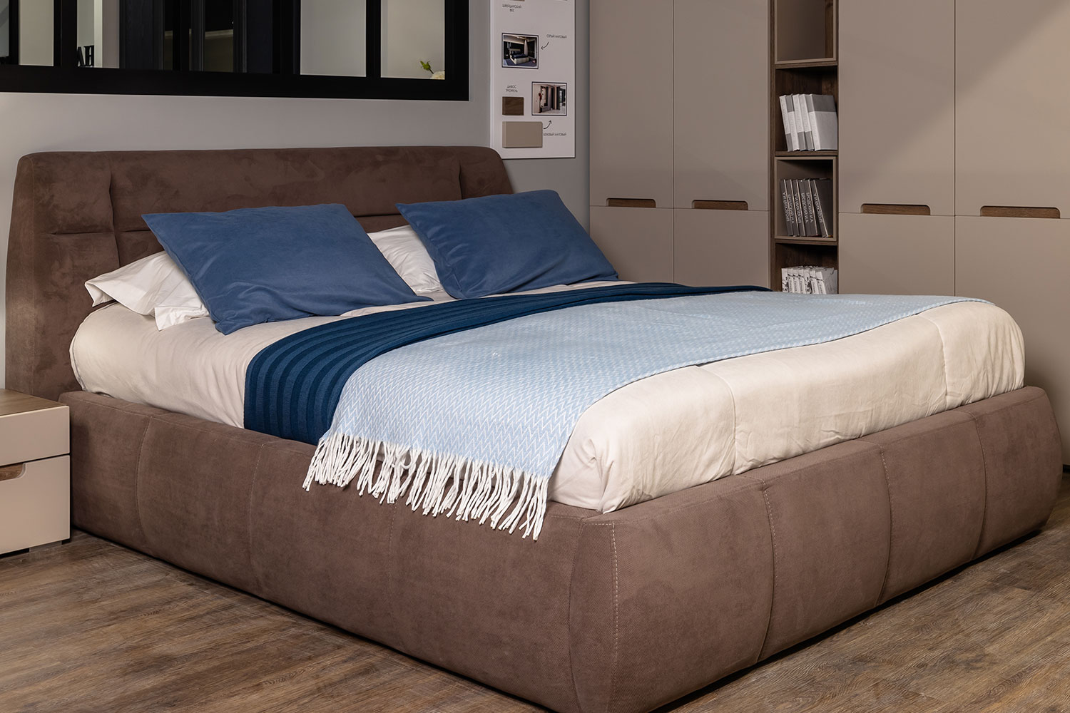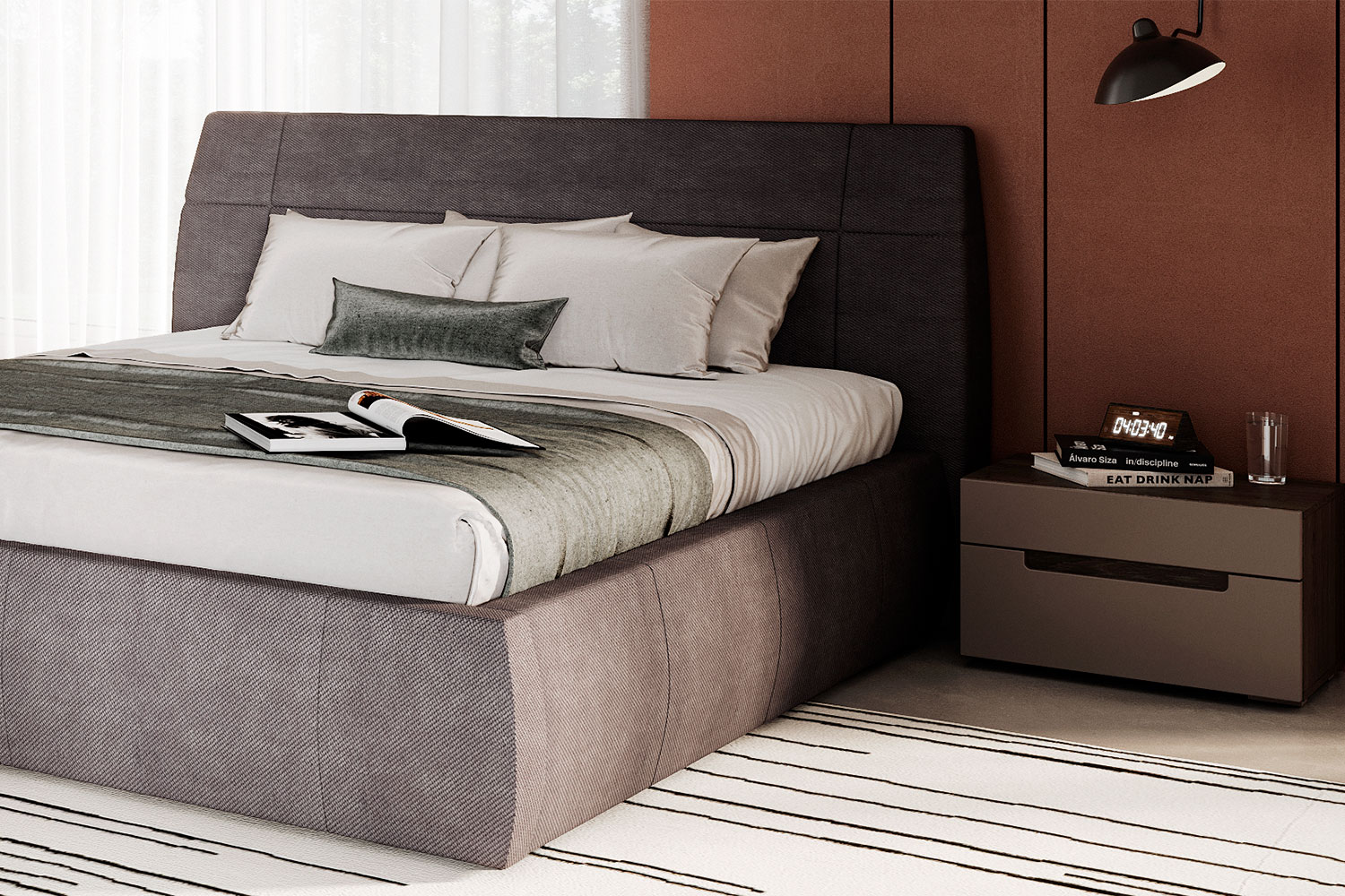 - Кровать оснащена подъемным механизмом и скрытым ящиком для хранения.