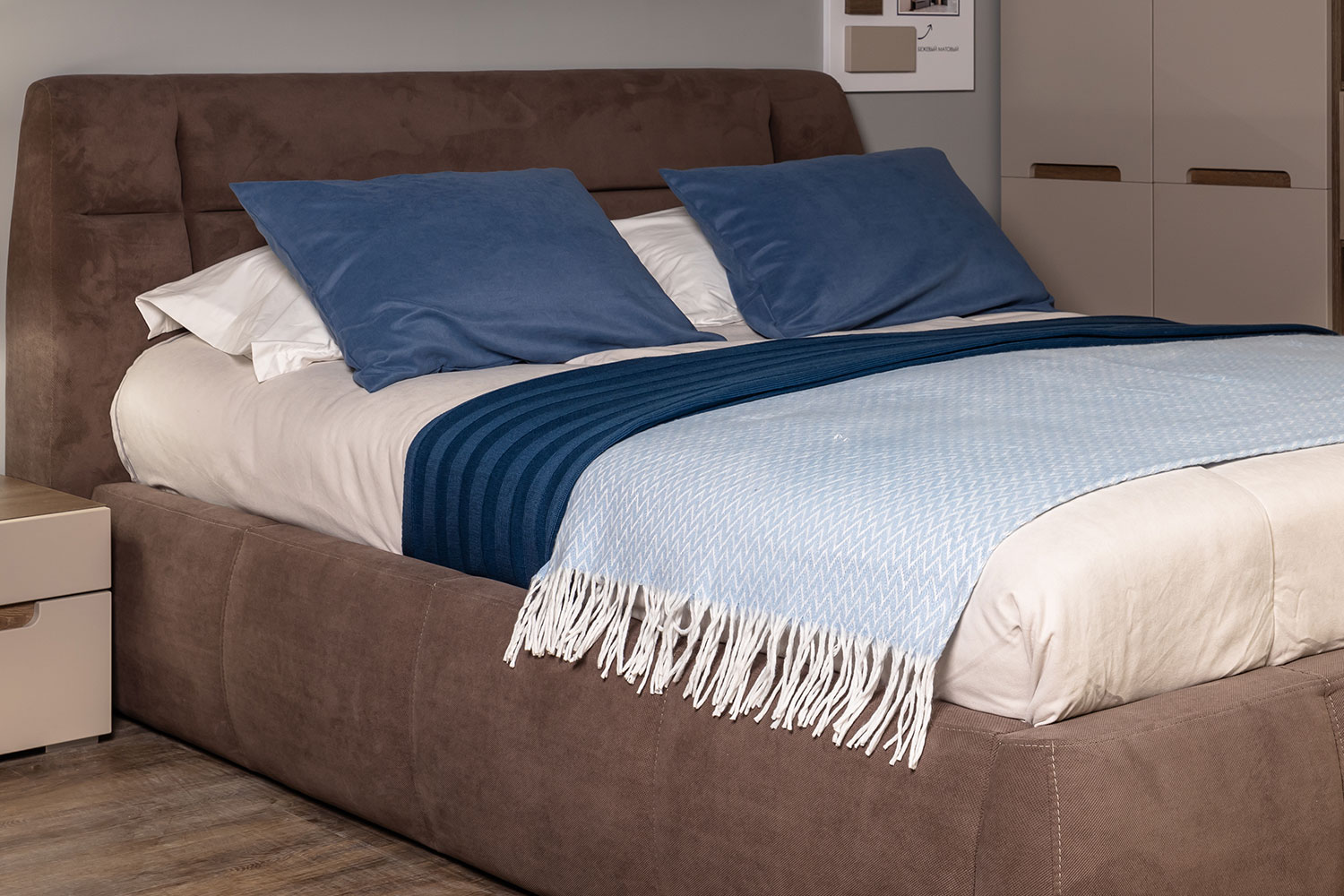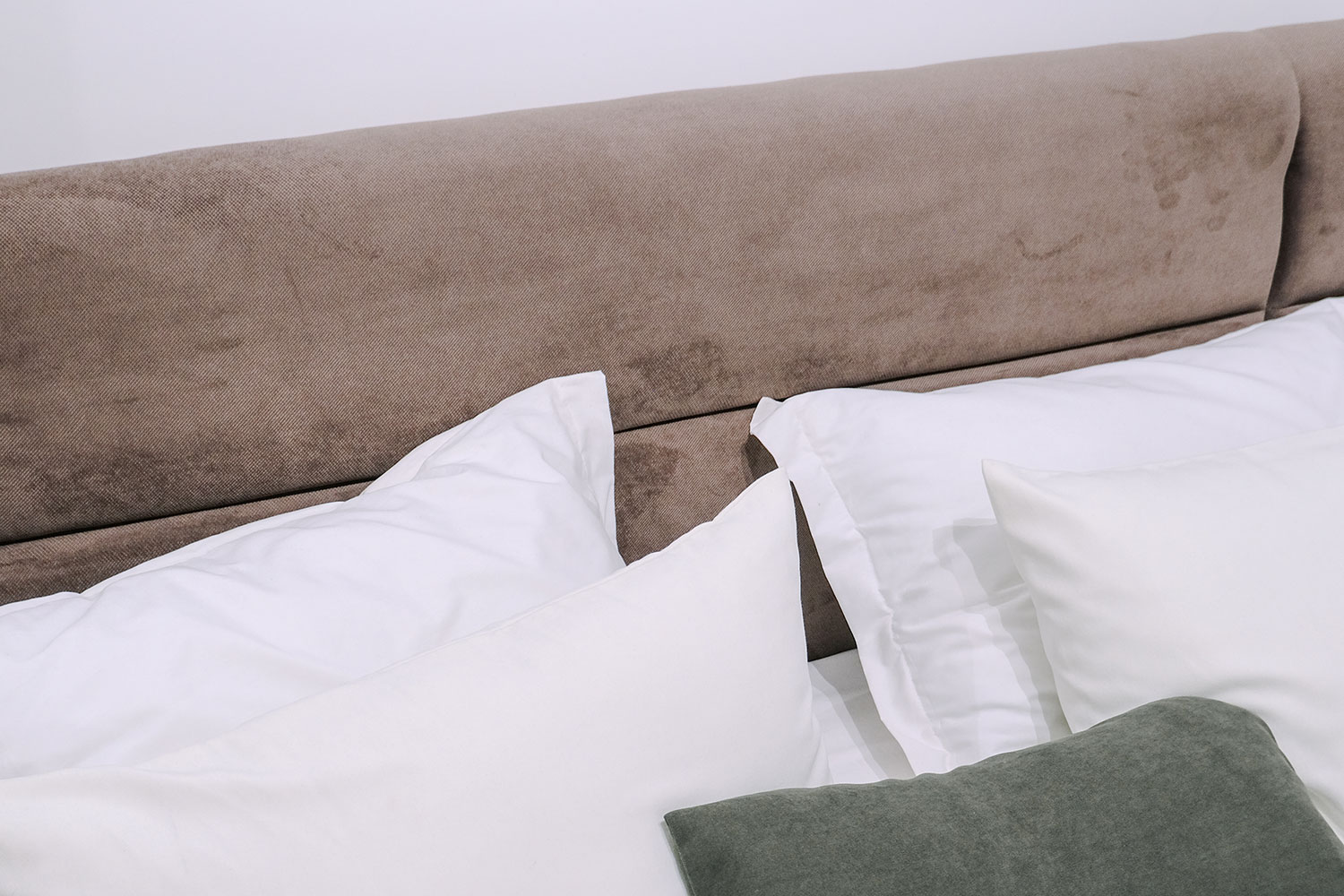 - Мягкий каркас кровати выполнен из ППУ, синтепона и спанбонда. Изголовье, боковые и передняя царги обтянуты мягким велюром. Он легко поддается чистке и позволит чувствовать себя в кровати комфортно;
